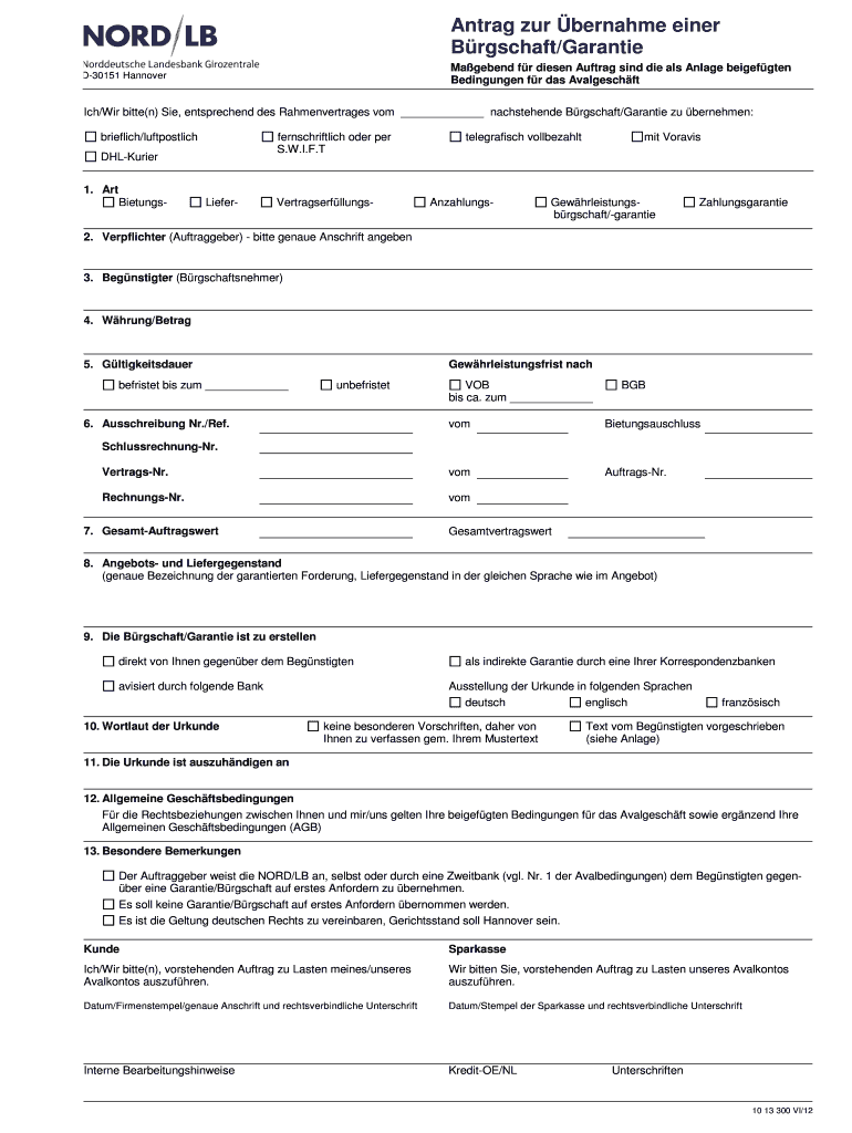 Holen Sie sich kostenlos BS-1013300Antrag Brgschaft und Bedingungen Avalgeschft SPk NORDLB - nordlb