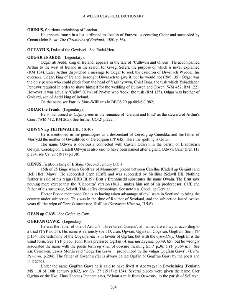 A WELSH CLASSICAL DICTIONARY OBI NUS, fictitious archbishop of London. He appears fourth in a list attributed to Jocelyn of Furness, succeeding Radar and succeeded by Conan (John Stow, The Chronicles