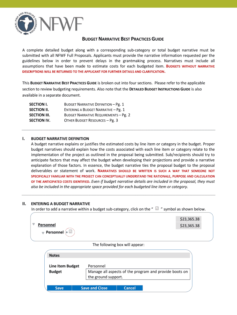 BUDGET NARRATIVE BEST PRACTICES GUIDE