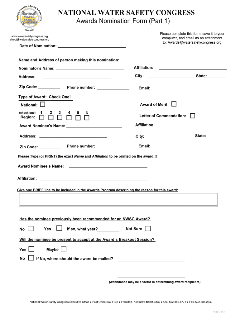 Get the free NATIONAL WATER SAFETY CONGRESS 2016 Awards Nomination www - watersafetycongress