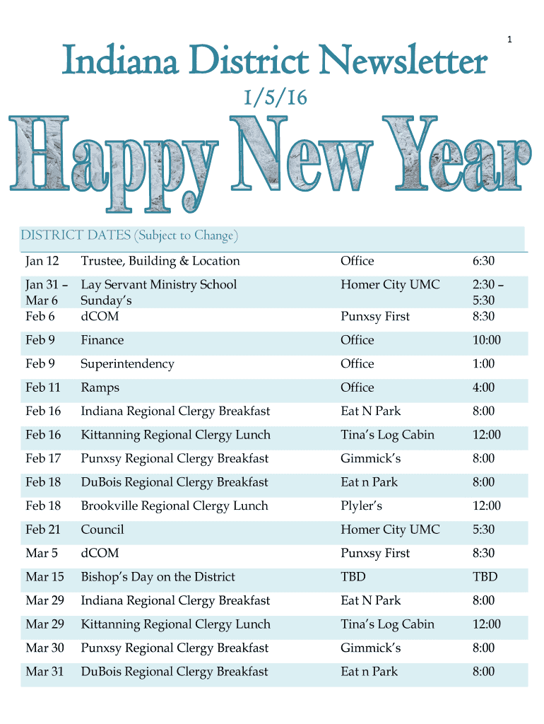 Fill out your indiana district newsletter online with pdfFiller!