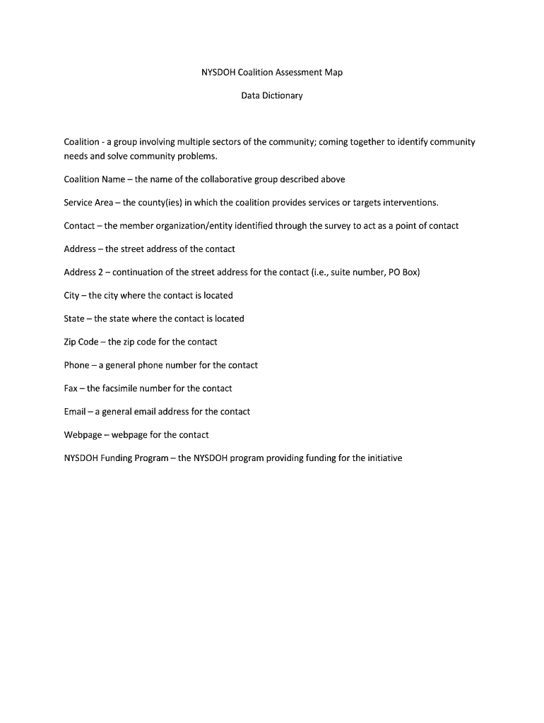 Get the free NYSDOH Coalition Assessment Map Data Dictionary Service