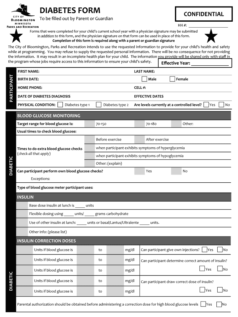 Get the free DIABETES FORM CONFIDENTIAL - City of Bloomington