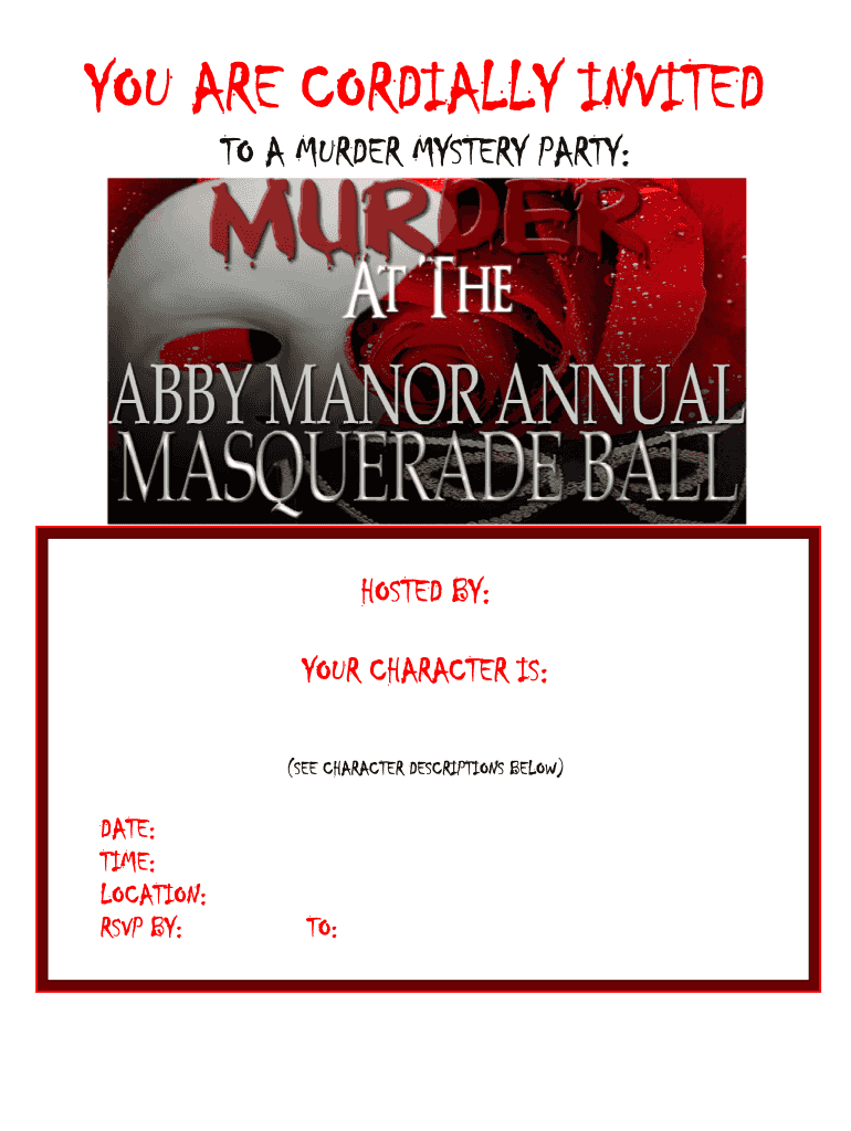 YOU AR C RDA Y IN TED Your CORD ALLY SITE TO A MURDER MYST R VERY PA ARTY: HOS STEP BY Y: YO CH OUR TRACT IS: TER (SEE CHARACTER DESCRIPTION R IONS BELOW W) DATE: TIME: LOCAL TON: RSVP B BY: TO: T