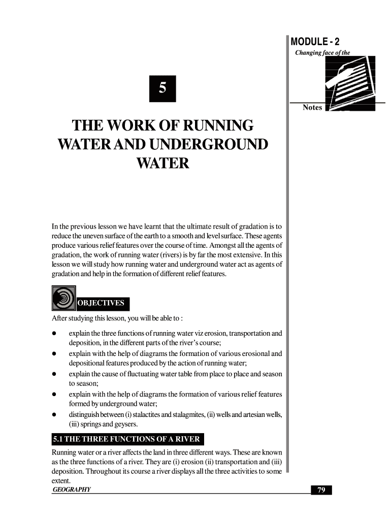 Get the free Notes THE WORK OF RUNNING WATER AND UNDERGROUND WATER