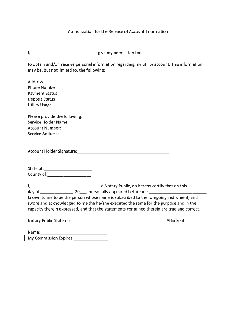 Authorization for the Release of Account Information I, give my permission for to obtain and/or receive personal information regarding my utility account. This information may be, but not limited