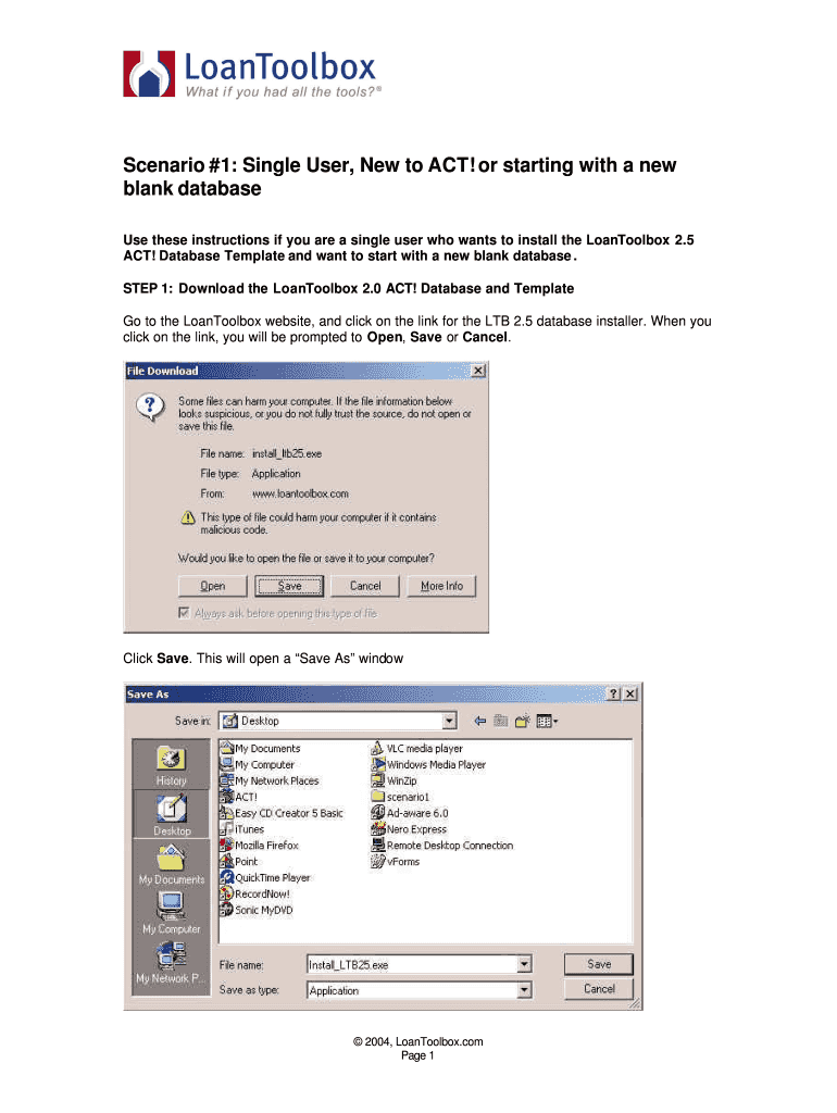 Scenario #1: Single User, New to ACT! Or starting with a new blank database Use these instructions if you are a single user who wants to install the LoanToolbox 2.5 ACT! Database Template and want