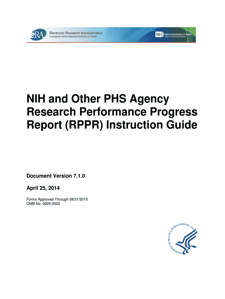 NIH and Other PHS Agency Research Performance Progress Report (RPR) Instruction Guide Document Version 7.1.0 April 25, 2014, Forms Approved Through 08/31/2015 OMB No. 09250002 NIH RPR Instruction