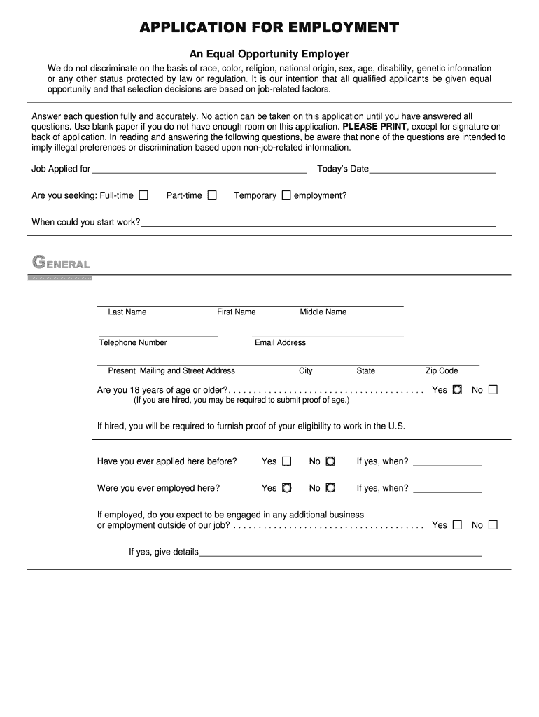 Get the free Application for Employment - long form without criminal conviction question