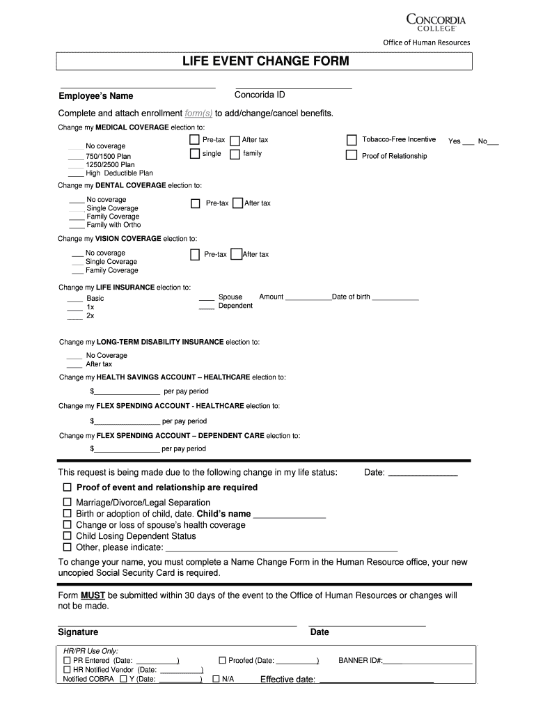 Get the free Life Event Change Form - Concordia College - concordiacollege
