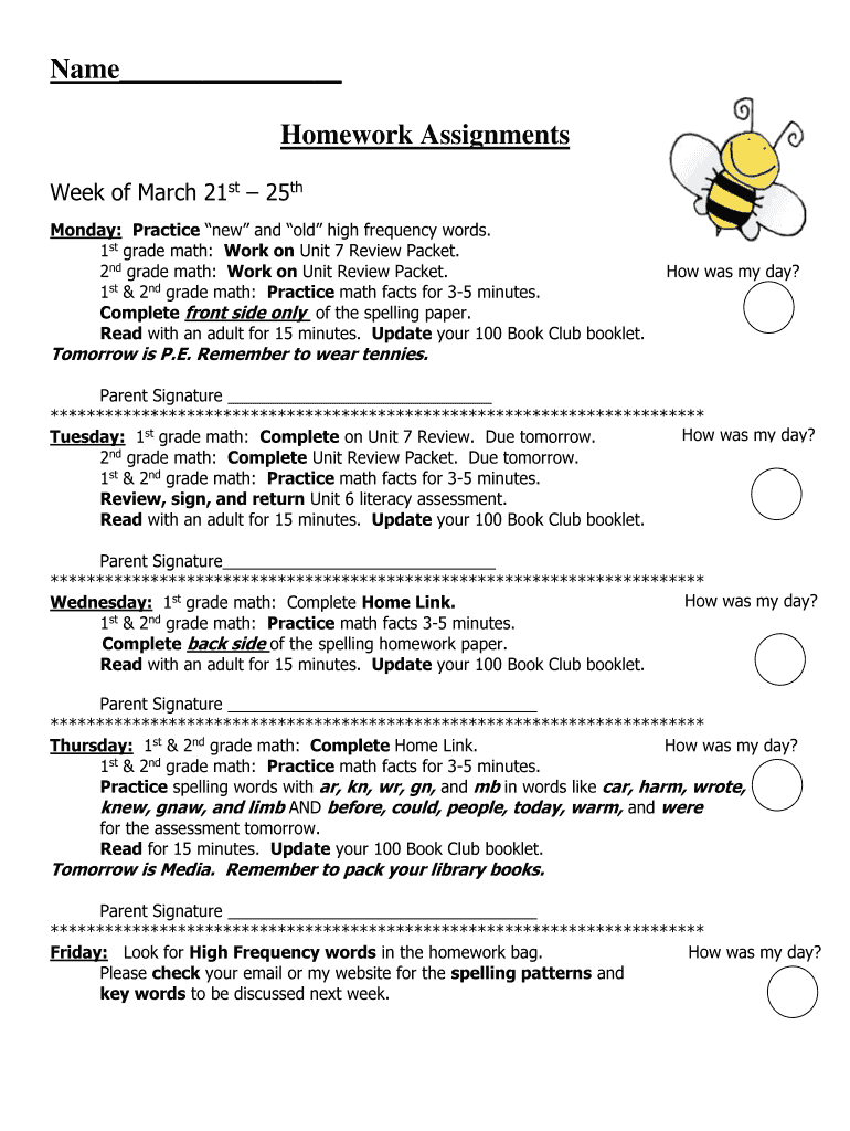 Edit your name homework assignments form online