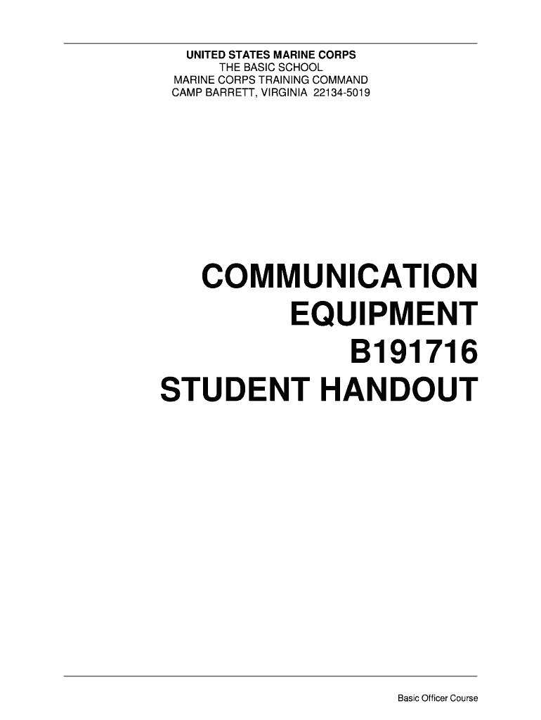 STUDENT HANDOUTBasic Officer CourseB191716Communication EquipmentCommunication