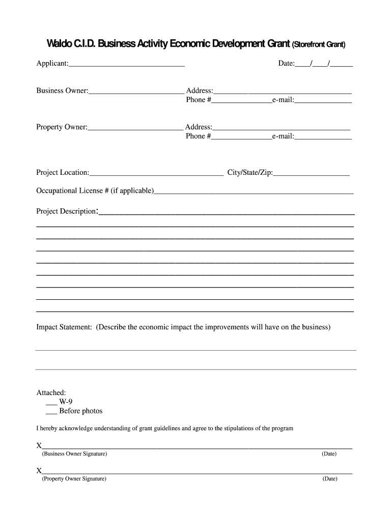 Get the free Waldo C.I.D. Business Activity Economic Development Grant (Storefront Grant) - waldokc