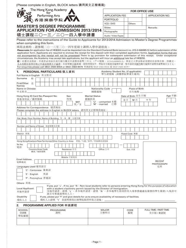 FOR OFFICE USE APPLICATION FEE APPLICATION NO. PORTFOLIO MASTER IS DEGREE Program APPLICATION FOR ADMISSION 2013/2014 Others CD / DVD Slides Remarks Photographs Audio / Videotapes Please refer to