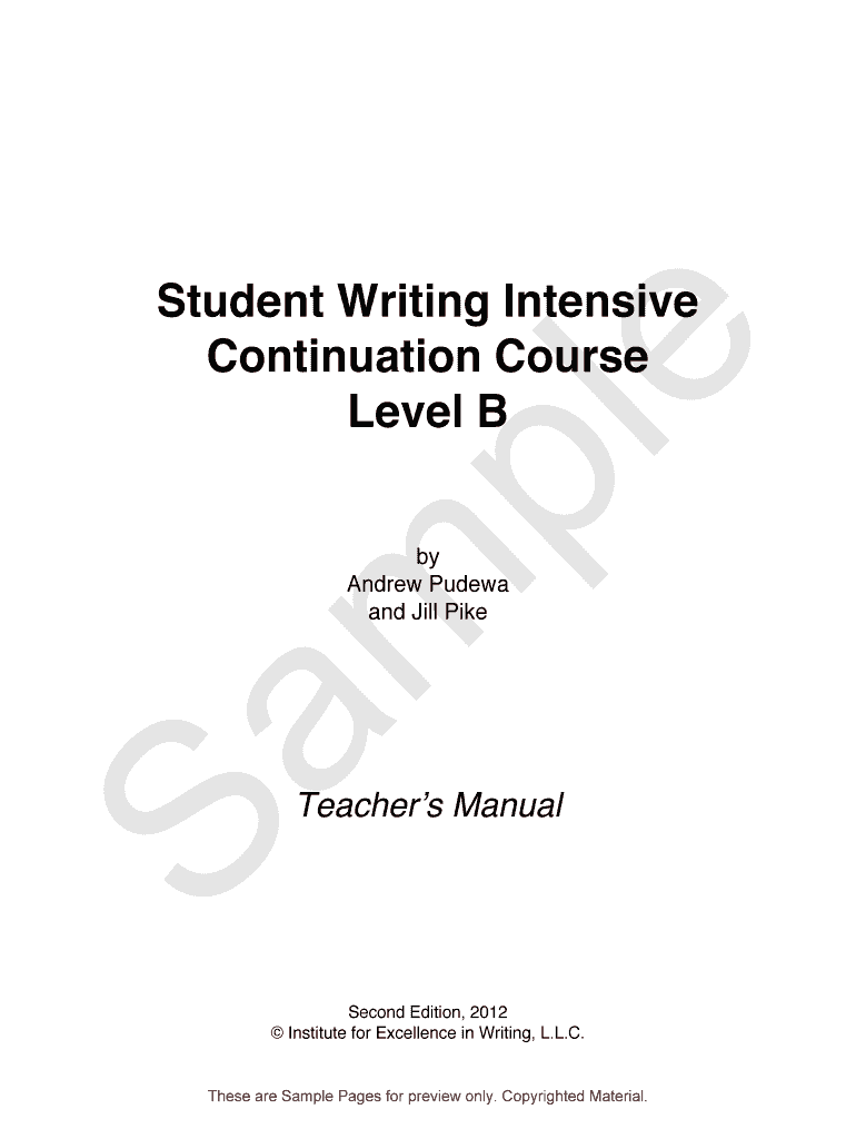 M pl e Student Writing Intensive Continuation Course Level B SA by Andrew Judea and Jill Pike Teachers Manual Second Edition, 2012 Institute for Excellence in Writing, L.L.C. These are Sample Pages