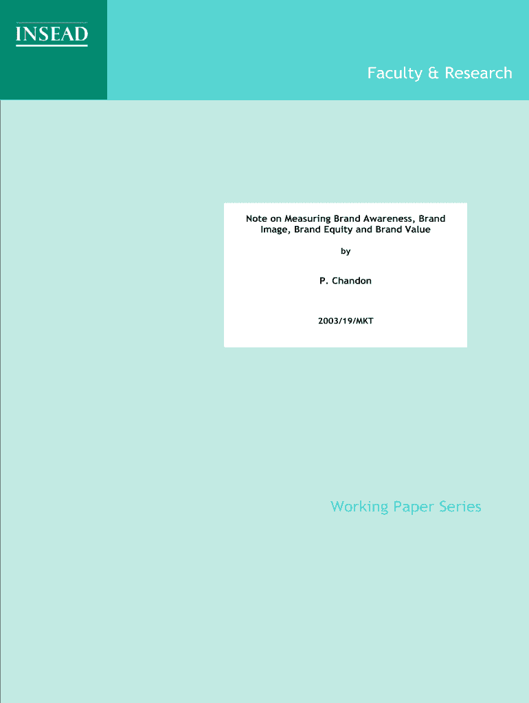 Faculty & Research Note on Measuring Brand Awareness, Brand Image, Brand Equity. And Brand Value by P. Chandon 2003/19/MKT Working Paper Series Note on Measuring Brand Awareness, Brand Image, Brand