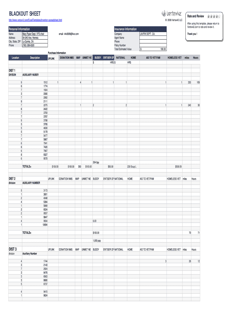 BLACKOUT SHEET Personal Information Name Address City, State, ZIP Phone Rate and Review 2008 Vertex42 LLC 42 http://www.vertex42.com/ExcelTemplates/inventoryspreadsheet.html After using this template,