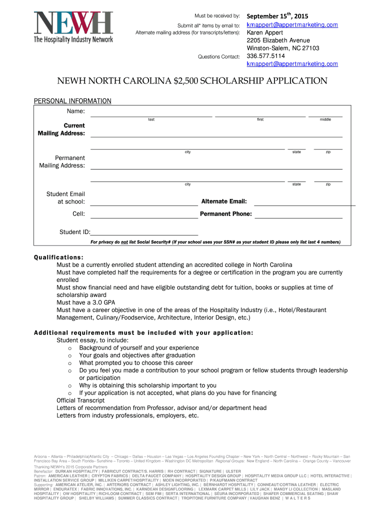 Get the free NEWH NORTH CAROLINA 2500 SCHOLARSHIP APPLICATION