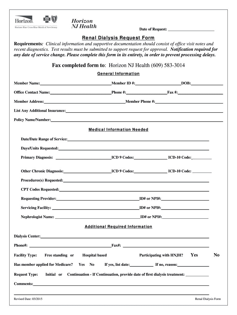 Get the free Renal Dialysis Form