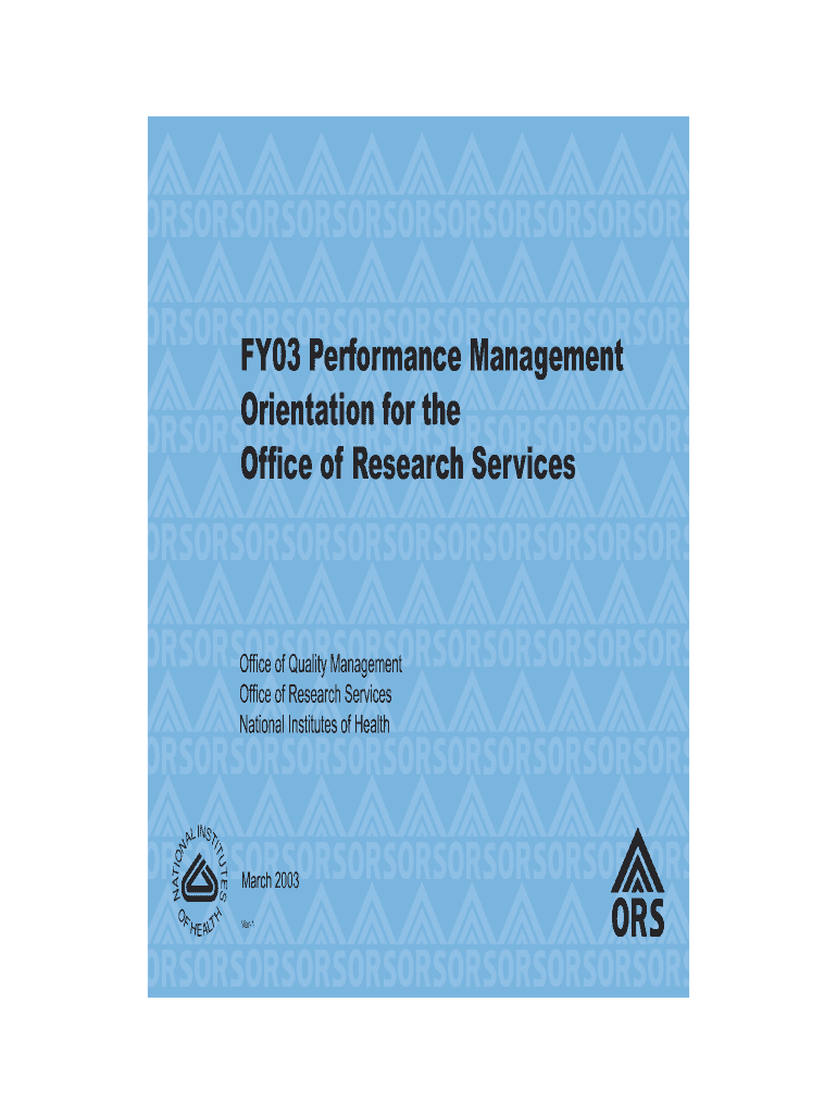 FY03 Performance Management Orientation for the Office of Research Services Office of Quality Management Office of Research Services National Institutes of Health March 2003 Ver1 For more information