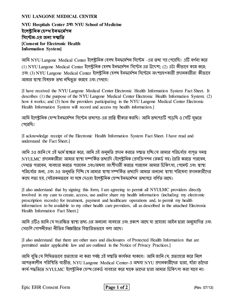 NYU ANYONE MEDICAL CENTER NYU Hospitals Center NYU School of Medicine Consent for Electronic Health Information System NYU Lang one Medical Center (1) NYU Lang one Medical