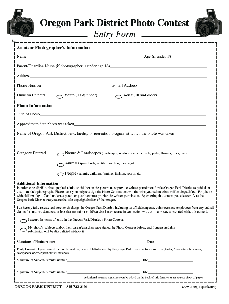 Oregon Park District Photo Contest Entry Form Amateur Photographers Information Name Age (if under 18) Parent/Guardian Name (if photographer is under age 18) Address Phone Number Email Address Division