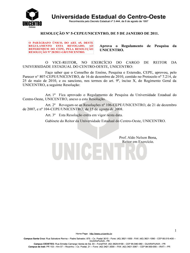 Universidade Gradual do Centromere Reconhecida polo Secret Gradual n 3.444, DE 8 de Acosta de 1997 RESOLVE N 5CEPE/UNSCENTED, DE 5 DE JANEIRO DE 2011. O PARAGRAPH NICO, DO ART. 65, DESE REGALEMENT