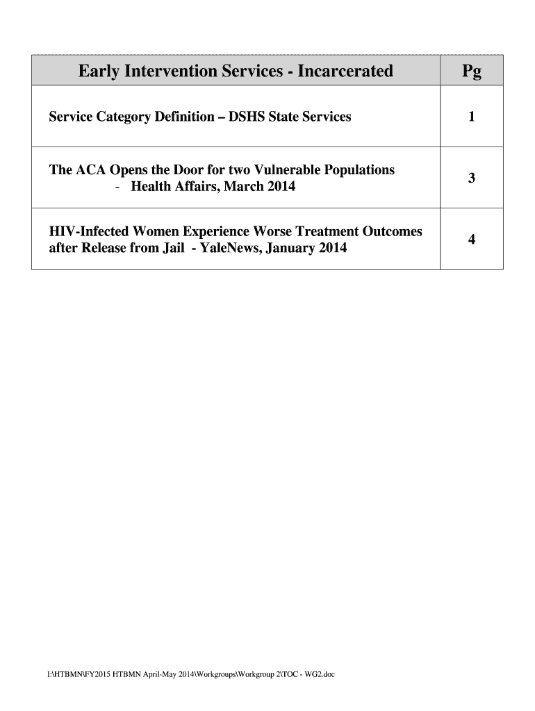 Get the free Early Intervention Services Incarcerated - rwpchouston