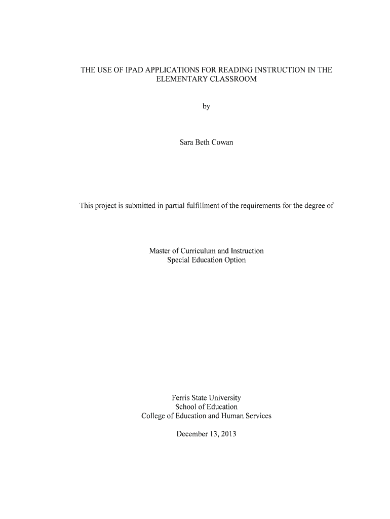 Get the free THE USE OF IPAD APPLICATIONS FOR READING INSTRUCTION IN - fir ferris