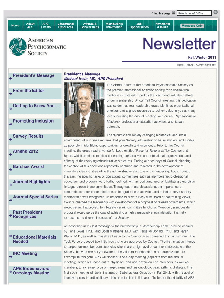 Print this page Home About APS Events Educational Resources Awards & Scholarships Membership Information Job Opportunities Search the APS Site Newsletter & Media Fall/Winter 2011 Home News Current