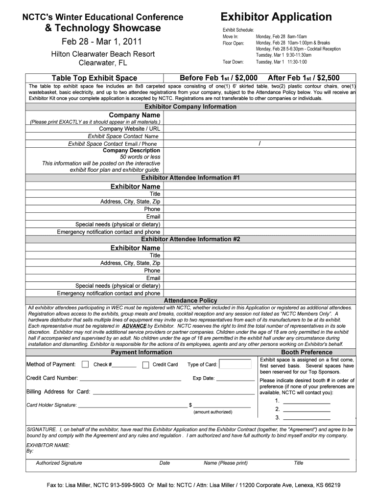 Exhibitor Application CTC's Winter Educational Conference & Technology Showcase Exhibit Schedule: Move In: Monday, Feb 28 8am10am Monday, Feb 28 10am1:00pm & Breaks Floor Open: Monday, Feb 28 56:30pm