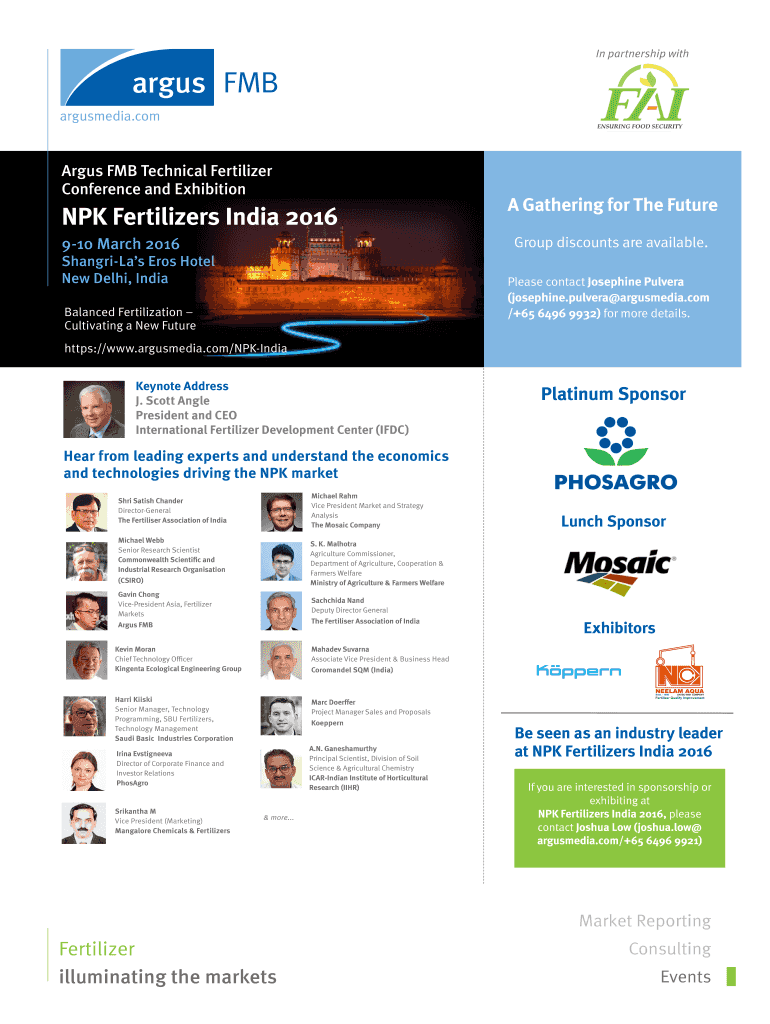 In partnership with Argus FM Technical Fertilizer Conference and Exhibition NP Fertilizers India 2016 910 March 2016 Shangri-La Eros Hotel New Delhi, India A Gathering for The Future Group discounts