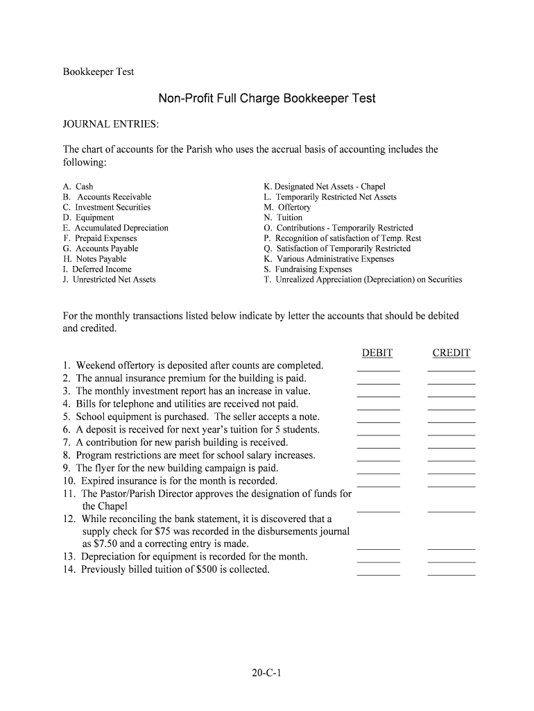 Get the free Non-Profit Full Charge Bookkeeper Test - dioceseofpueblo