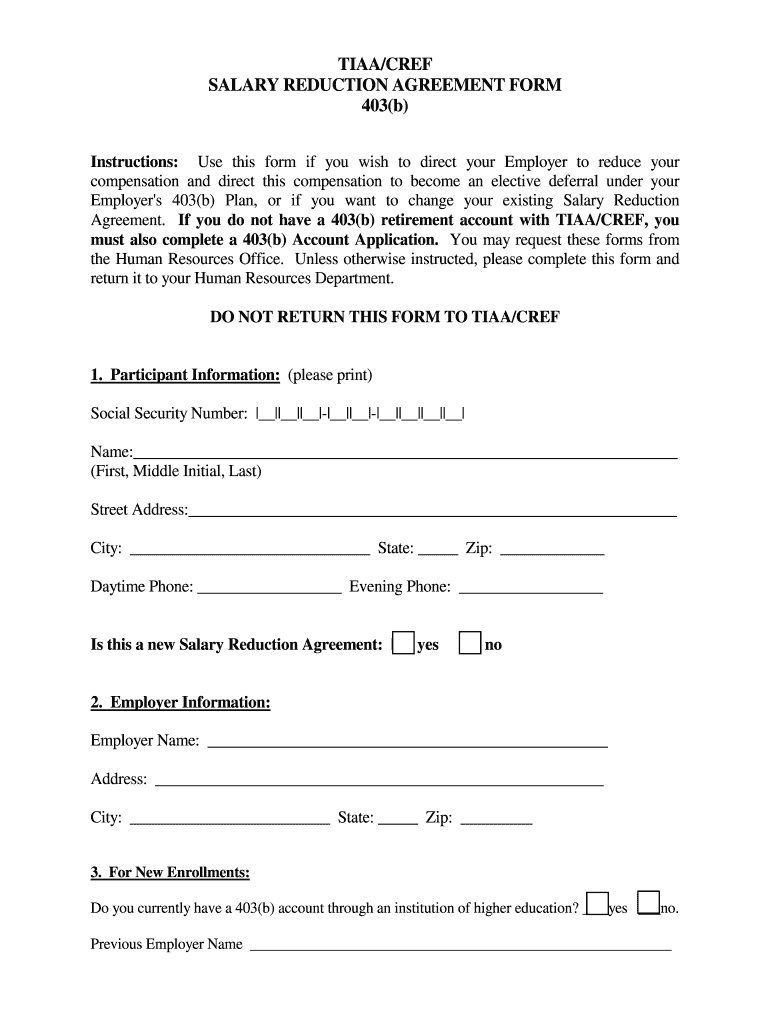 SALARY REDUCTION AGREEMENT FORM
