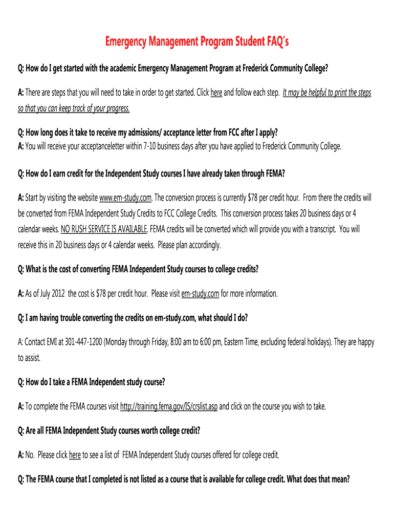 Q: How do I get started with the academic Emergency Management Program at Frederick Community College?