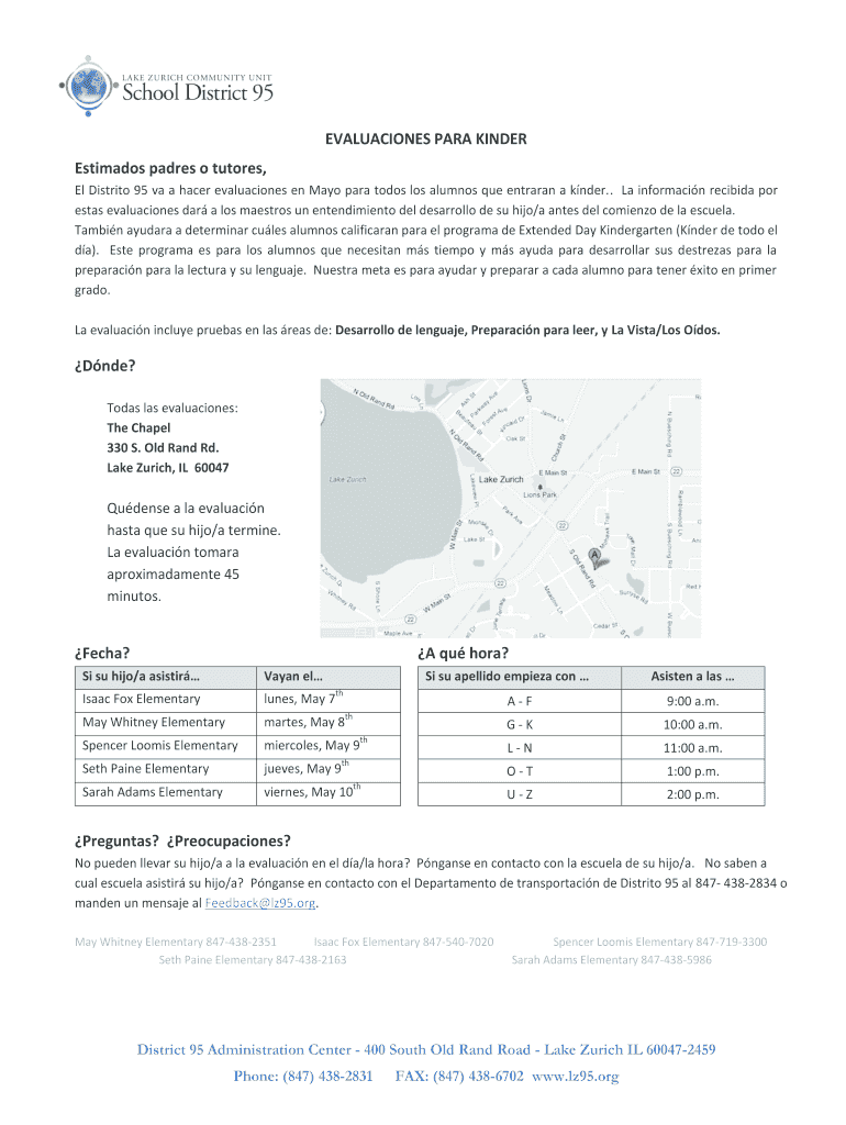 EVALUATIONS PARA KINDER Estimates padres o tutors, El District 95 VA a racer evaluation en Mayo para to-dos Los alumnus Que entrains a k under. La informal n recited POR Estes evaluations DAR a Los