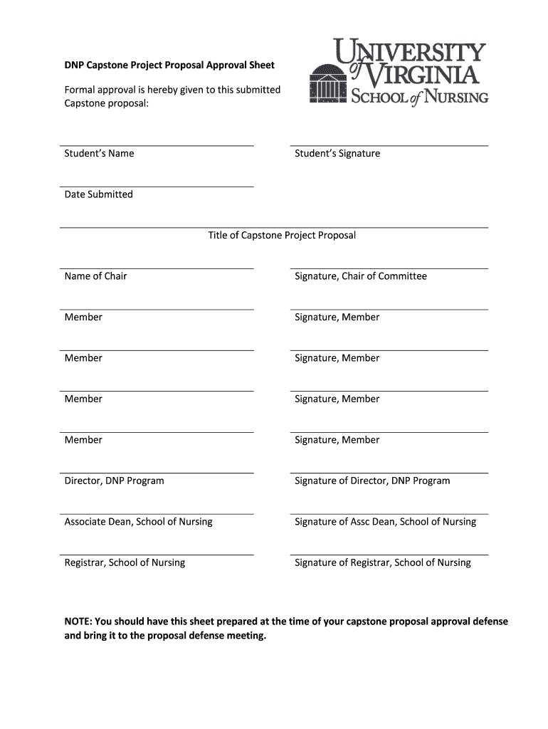 Get the free DNP Capstone Project Proposal Approval Sheet - nursing virginia