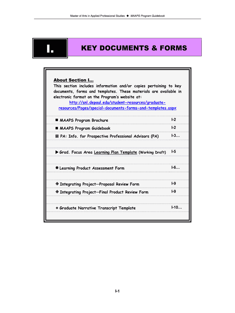 Master of Arts in Applied Professional Studies MAPS Program Guidebook I. KEY DOCUMENTS & FORMS About Section I This section includes information and/or copies pertaining to key documents, forms and