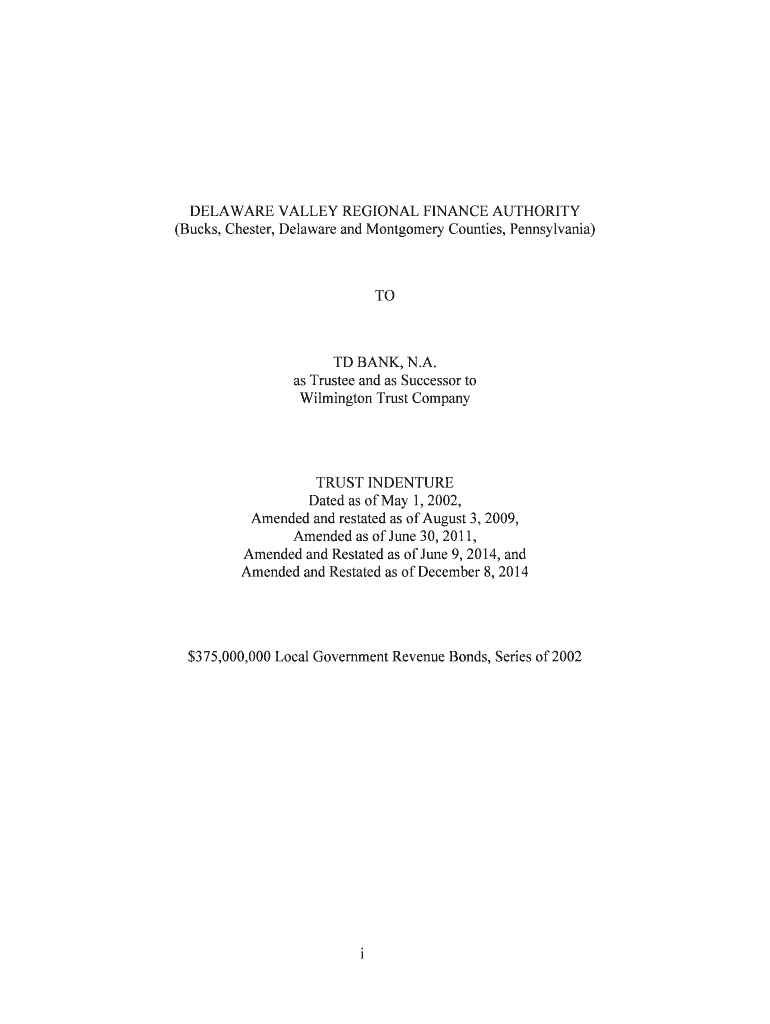 Get the free 2002 Series Amended and Restated Trust Indenture as of December 8 2014docx - delval