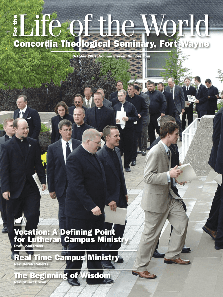For the Life of the World Concordia Theological Seminary, Fort Wayne October 2007, Volume Eleven, Number Four Vocation: A Defining Point for Lutheran Campus Ministry Prof. John Less Real Time Campus