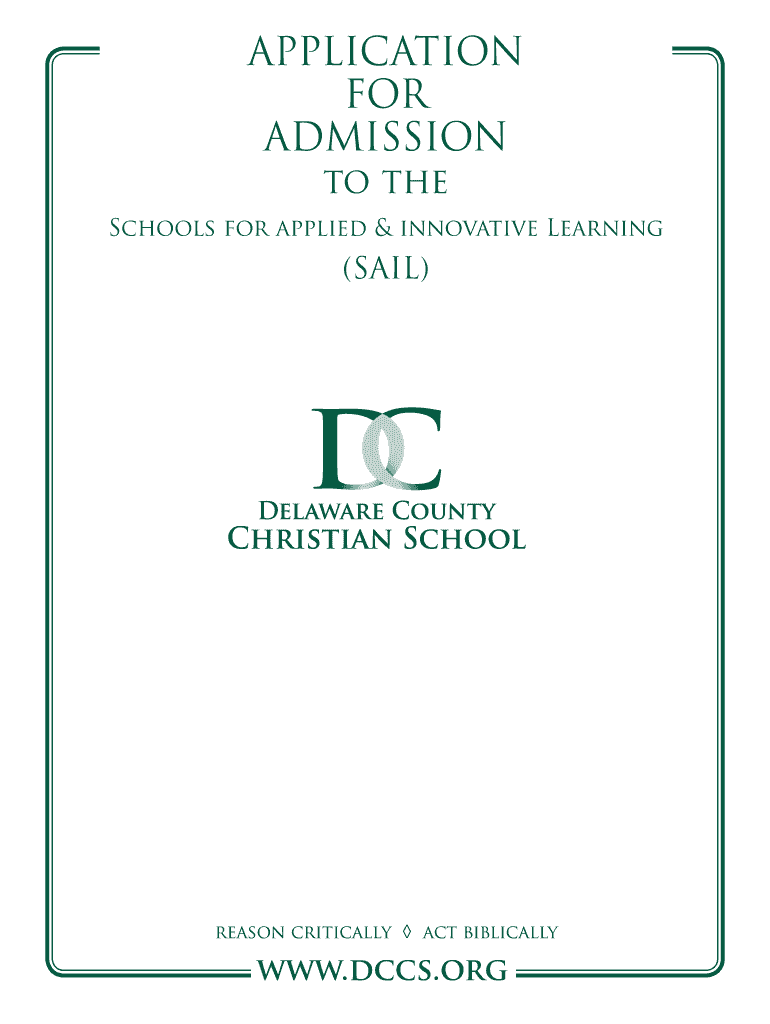APPLICATION FOR ADMISSION to the Schools for applied & innovative Learning (SAIL) Delaware County Christian School reason critically act biblically www.dccs.org Delaware County Christian School Dear