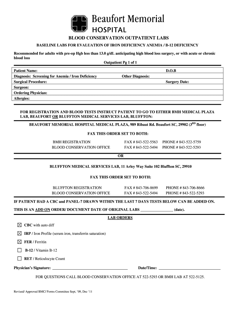 Get the free Blood Conservation - Beaufort Memorial Hospital - bmhsc
