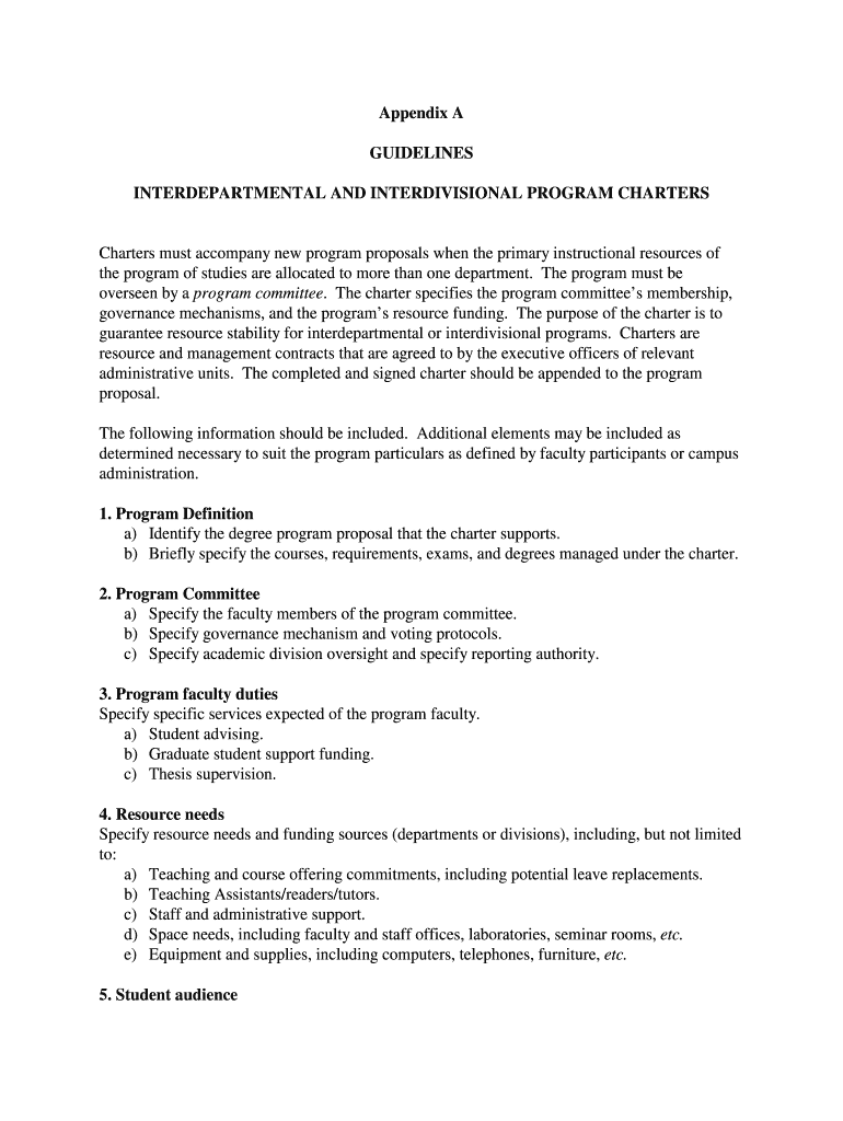 Appendix A GUIDELINES INTERDEPARTMENTAL AND INTERDIMENSIONAL PROGRAM CHARTERS must accompany new program proposals when the primary instructional resources of the program of studies is allocated to