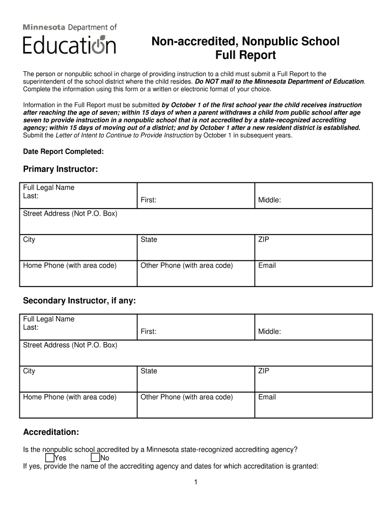Non-accredited nonpublic school full must include information on curriculum, student enrollment, teaching staff, facilities, and more.