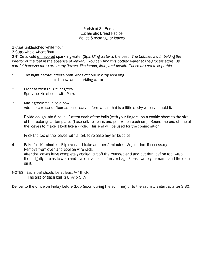Get the free Parish of St Benedict Eucharistic Bread Recipe Makes 6 - stbenedict