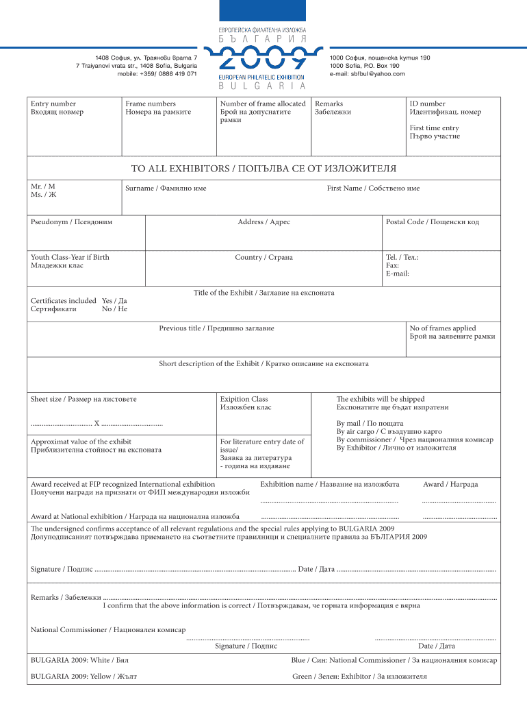 1408, 7 7 Traiyanovi data STR., 1408 Sofia, Bulgaria mobile: +359/ 0888 419 071 Entry number Frame numbers a 1000, 190 1000 Sofia, P.O. Box 190 email: symbol yahoo.com Number of frame allocated Remarks