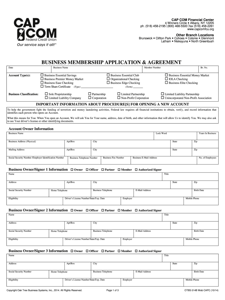 Get the free BUSINESS MEMBERSHIP APPLICATION amp AGREEMENT - capcomfcu