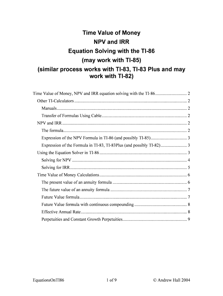 Time Value of Money, NPV and IRR equation solving