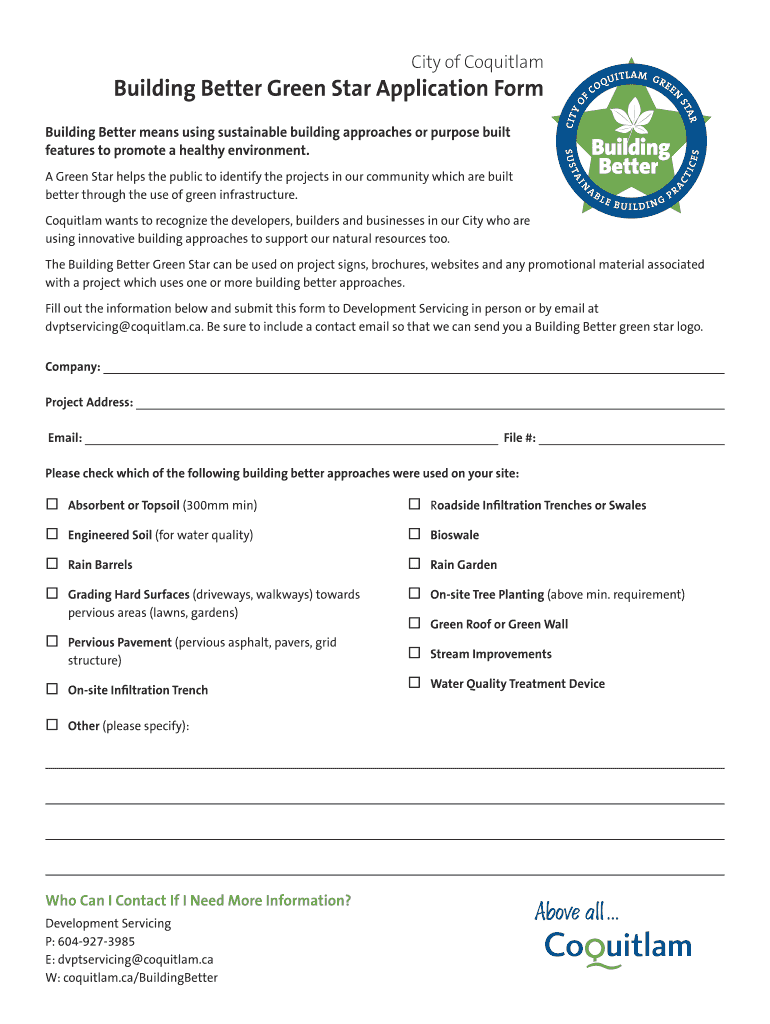 Get the free Building Better Green Star Application Form EC O Q U I T L - coquitlam