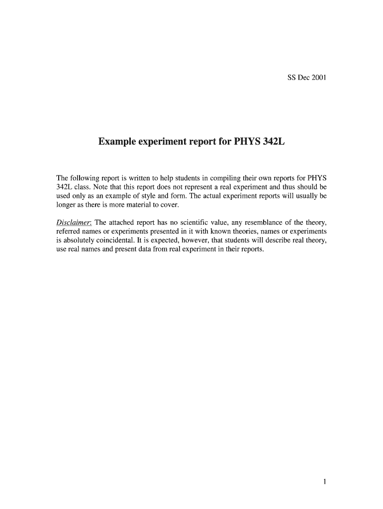 SS Dec 2001Example experiment report for PHYS 342LThe following report is written to help students in compiling their own reports for PHYS